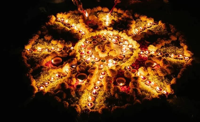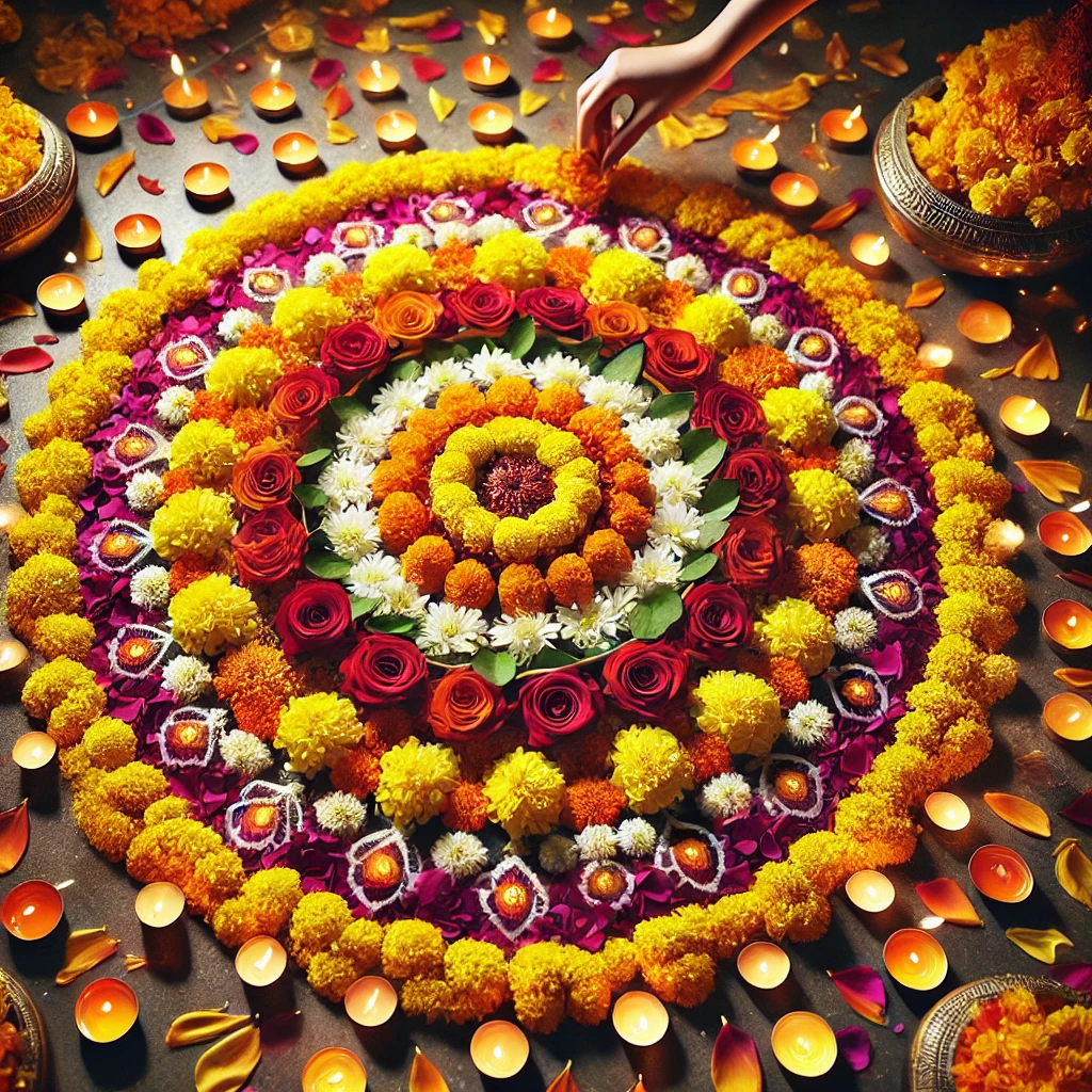 नवरात्रि के दौरान मंदिर के मुख्य द्वार पर रंगोली सजाने से इसकी सुंदरता कई गुना बढ़ जाती है। आप रंगोली के पारंपरिक डिज़ाइन में देवी-देवताओं से जुड़े प्रतीक जैसे फूल, पत्तियां, स्वास्तिक या अन्य धार्मिक चिन्हों को शामिल कर सकते हैं। रंगोली बनाने के लिए प्राकृतिक सामग्री जैसे फूलों की पंखुड़ियां, पत्तियां, आटा, हल्दी, और रंगीन चावल का उपयोग किया जा सकता है, जिससे यह पर्यावरण के अनुकूल भी होती है। रंगोली न केवल द्वार की शोभा बढ़ाती है, बल्कि इसे शुभ और मंगलकारी भी माना जाता है। (Image Credit- Pexels)